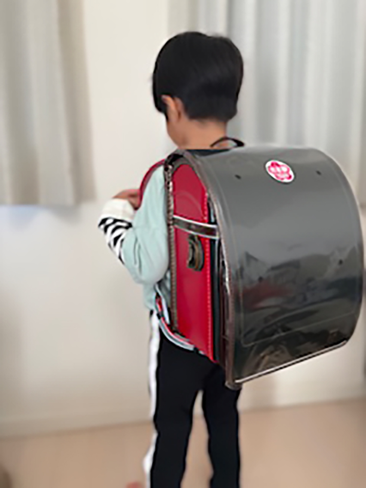 知人からケータさんがランドセルをデザインされている、と教えて頂いて年少の時から楽しみにしていてお台場で展示会をされている時に実物を拝見して『お兄さんになったら絶対このランドセルにする!』と。